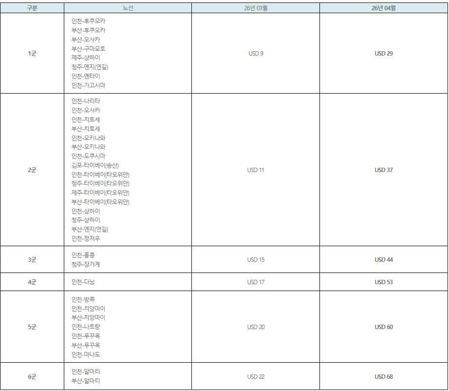 · 적용 기간 : 2026. 4. 1 ~ 4. 30 (발권일 기준)