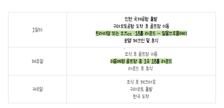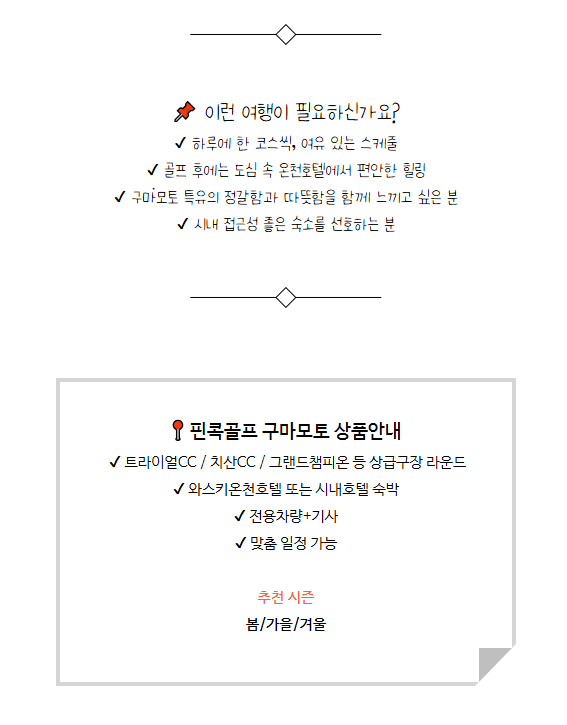 💬 라운드의 즐거움, 그리고 구마모토의 세 가지 명코스 ✅카트 페어웨이 진입 가능 ✅ 2인 플레이 가능 ✅ 노캐디 플레이