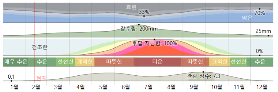 3월 ~ 5월 , 10-11월 이 가장 쾌적합니다.